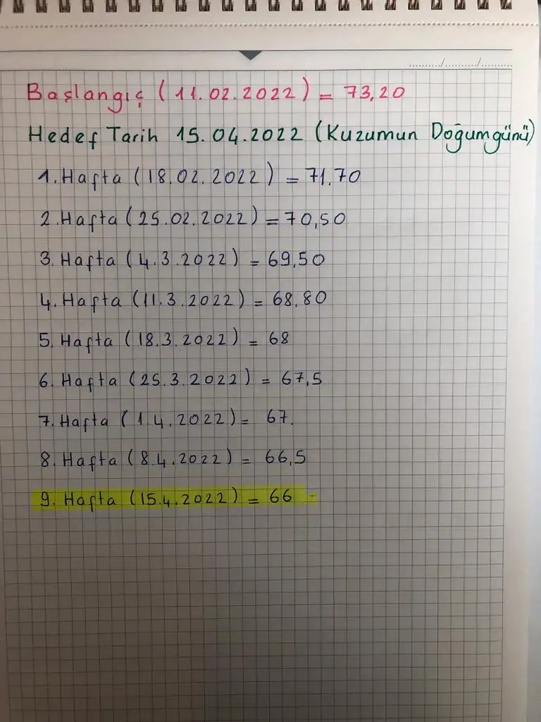 Süper plan cnm bende yapacgaim böyle tablo insAllah ulaşacağız hafiflemiş olarak süper fotoğraflar çekineceksinKendime kızımın doğumgününe kadar kilo verme planı oluşturdum.