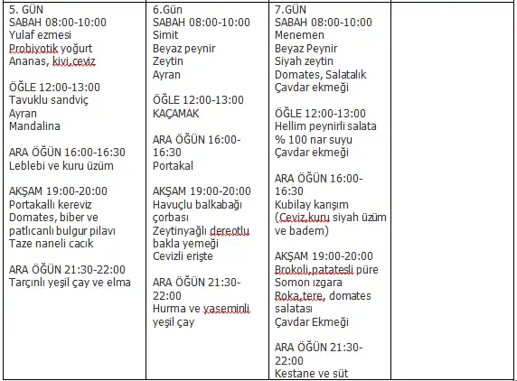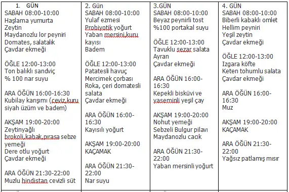 Akşam: Derisi alınmiş tavuk (200 gram), salata