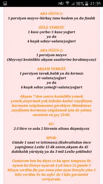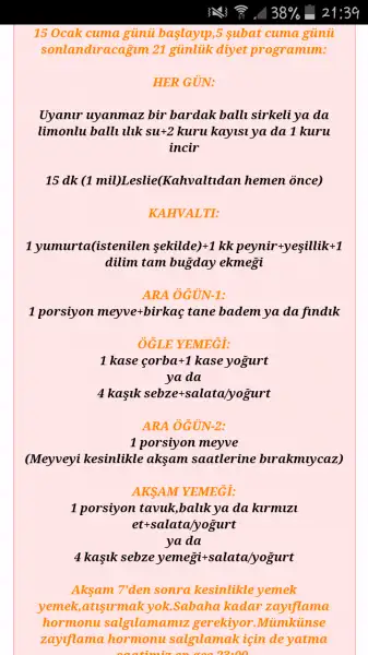 15 Ocak cuma günü başlayıp,5 şubat cuma günü sonlandıracağımız 21 günlük diyet programımız: