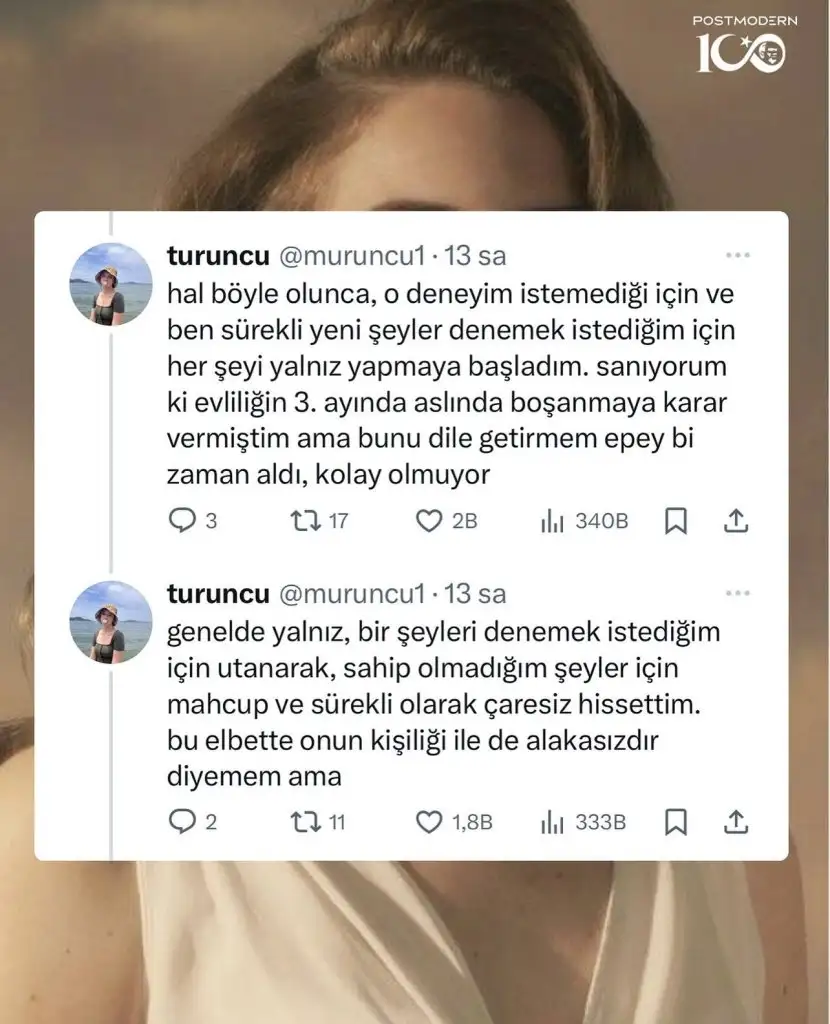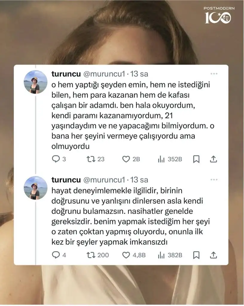 Bir de şöyle bir şey var kendi adıma. Eski eşim yaşlı biri değildi hem görüntü hem yaşam tarzı olarak 7 yaş vardı aramızda ama,ben belki de kendi yaşımı yaşamıyorum bilmiyorum düşünce tarzı olsun,görüntü olsun,gençlerle anlaşabilen,trendlerden haberi olan,sosyal medyaya gündeme hakim hayatı dolu dolu yaşamayı seven biriyim belki de bundan kaynaklı hissederdim şimdi düşününceYani şu ilişkideki sorun yaş farki mi?