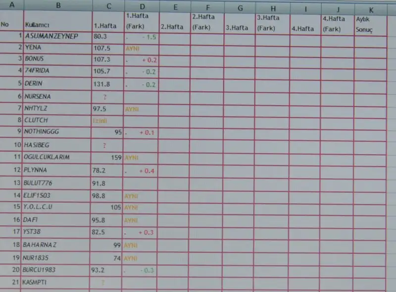 Ellerine saglik.Kilo veren,gayret eden,sabit kalan herkesi tebrik ediyorum arkadaşlar,azminiz daimi olsun..Yeni hafta daha cok azimli,gayretli,basarili geçsin hepimiz adina inşallah..