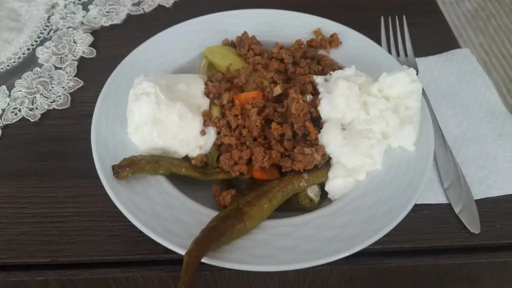 Bu öğle yemeğindi ama geç olunca öğle akşam birleşti yanında salata ve taze fasulye yedim