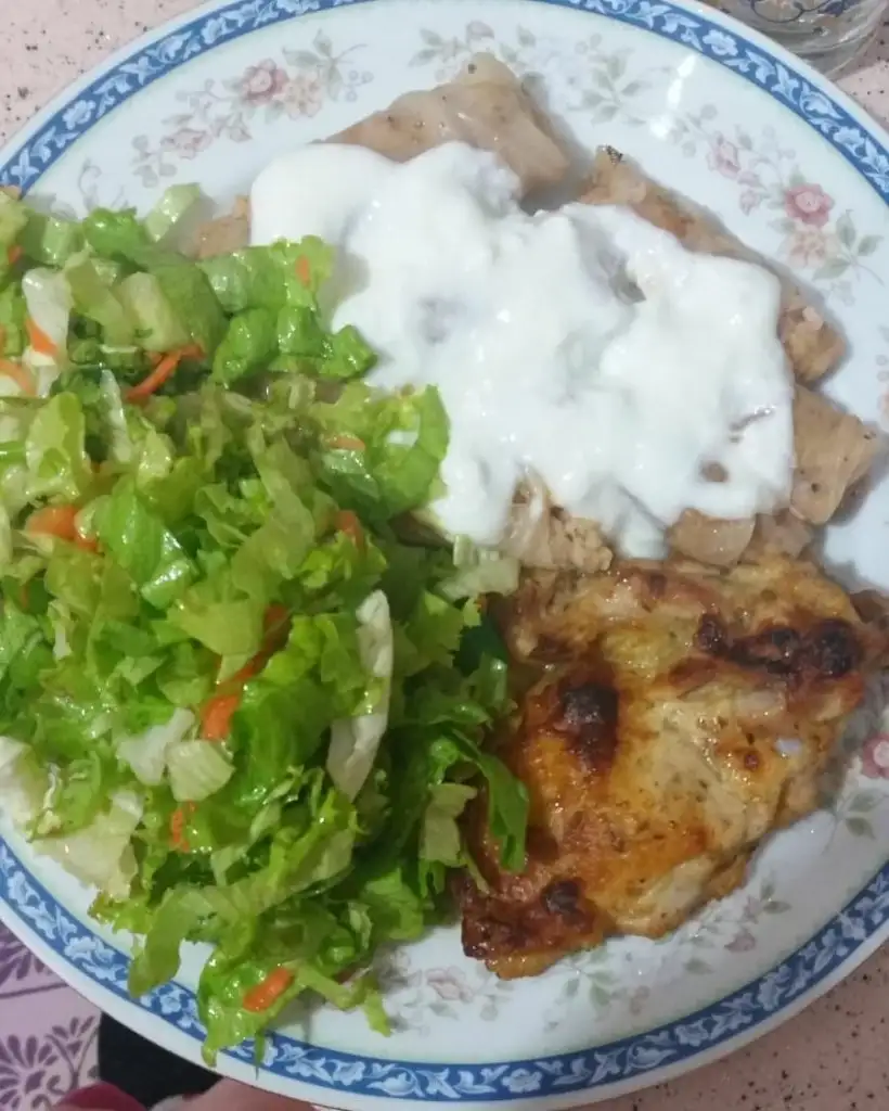 Öğlen: bir tabak bamya yemeği, bir tabak salata, 3 kaşık melemen 2 dilim ekmek