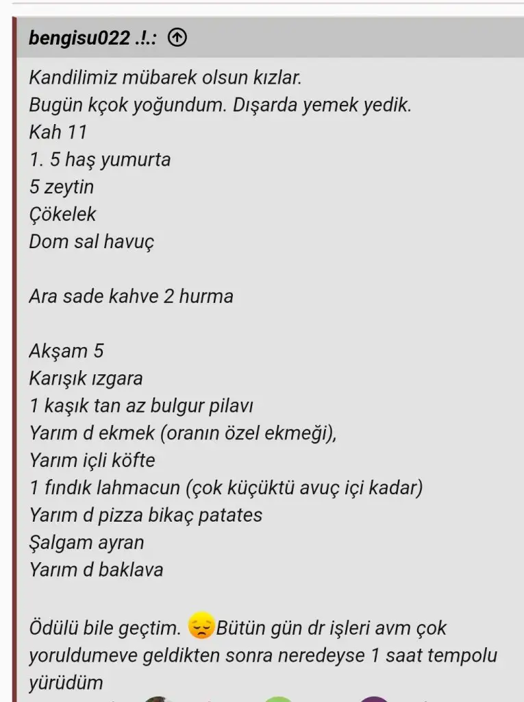 Sevindim canim aman kotu birsey olmasindaHayırlı kandiller kızlar. Bugün kah iyiydi akşam dışarda yedim baya karışıktı