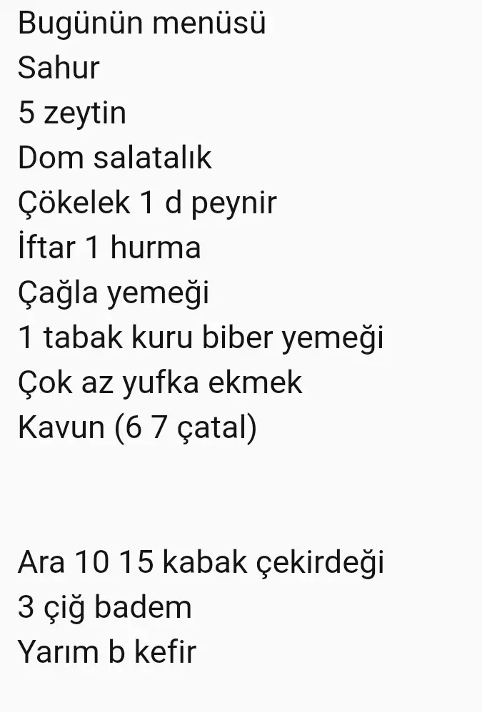 15:00 bi bardak ayran bi avuç çiğ kuruyemiş bi armut