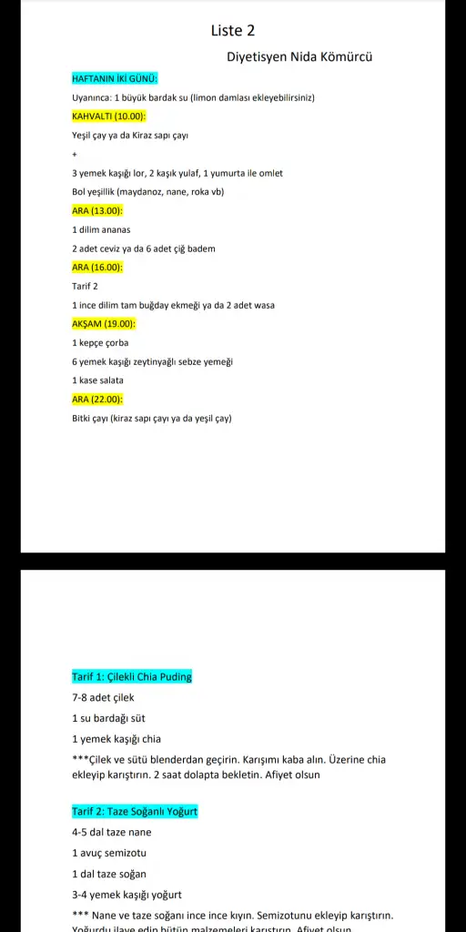 Diyetisyen verdi 2 gün için ayrı liste istersen atayimnasıl yapacaksın?