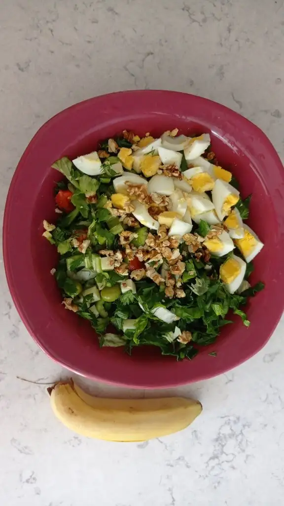 Akşam da yumurta salatası yeşil salata yedim. Birazdan azcik ceviz yiyeceğim.