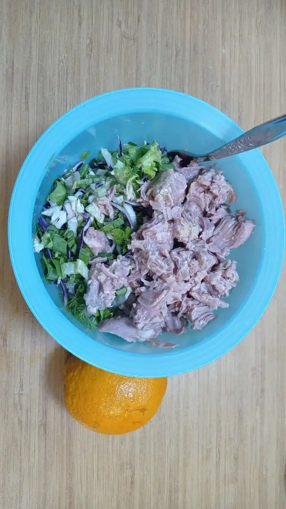 Dün akşamki ton balıklı salataydi. Bu akşam hindi etli salata vardı. Ton balığı gibi onunda konservesi mi buldum. Hem but hem göğüs iki çeşidi vardı ben but olanı aldım. Beğendim gayet güzeldi. Nöbet zamanları tüketilecek gibi.Günaydın canım afiyet olsun , çok güzel görünüyor. Baya besleyici bir öğün olmuş.ton balıklı salata çok güzel olur. Nöbet de kolaylillar diliyorum