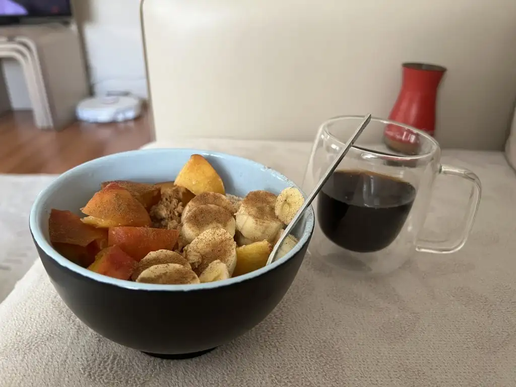 İyi yapmışsın canim. Sıcak duş veya hamam çok iyi gelir kasiklarin için. Geçmiş olsun.kızlar ben doğumdan beri regl olmadım ama bugün felaket kasıklarımda sancı başladı iki gündür Çılgınlar gibi gelen tatlı isteği belki de bundan bu hafta 1.3 kg gitti acaba onun mu şişkinlimi var bilemedim çünkü geçen haftaya göre bu hafta aşırı yavaşladı vermem. Bundan dolayı hem tatlı isteğini bastırırsın hem de vücuda tatlı bir şeyler girsin diye Gran ola şeftali muz yoğurt ve bol tarçınla şöyle bir tabak hazırladım öğlen yemeği için :)