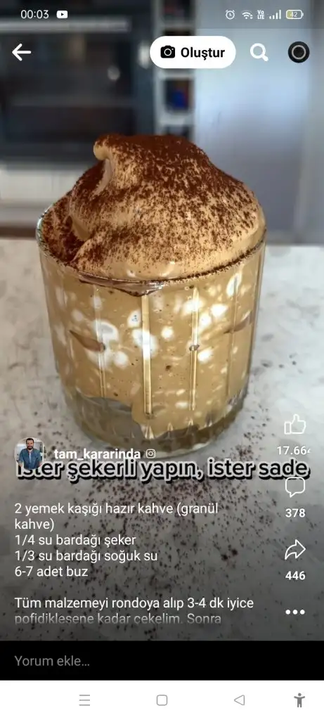 Geçen nette bı kahve gördüm az şeker soğuk su granül kahveli bizzz yaptı köpük köpük oldu. İçine süt koyabilirsiniz dedi