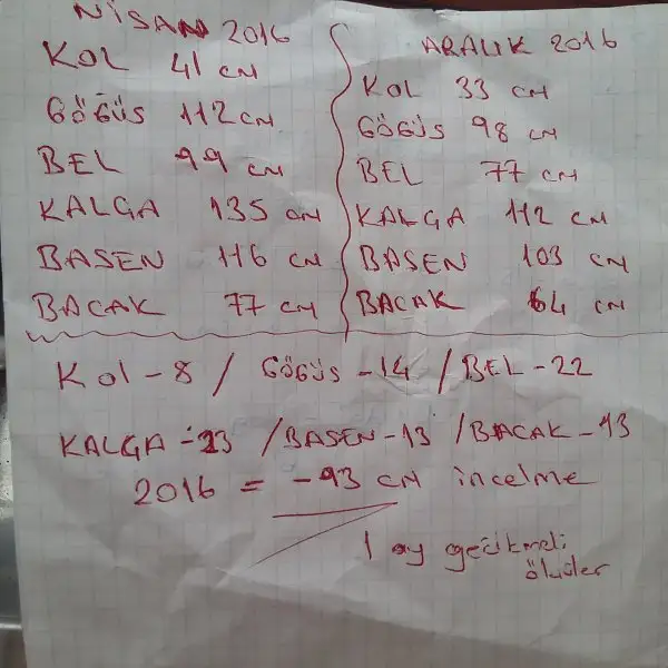 Buda benden size supriz olsun. 30 kiloyu tamamladık. yeni yıla 75 le girdim.hedef 69 inşallah. ÜST xxxl tan M bedene. . ALT 56 DAN 44 bedene