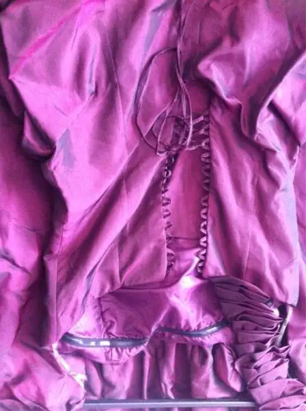 Mürdüm rengi önü kısa arkası uzun model iç kısmı sütyenlidir arkası ipli olduğndan bedeb sıkıntısı olmuyor dilediğiniz gibi daraltp bollaştırabilirsiniz.Sadece kına gecemde giydim kurutemizleme yapılıp dolabıma kaldrdım.