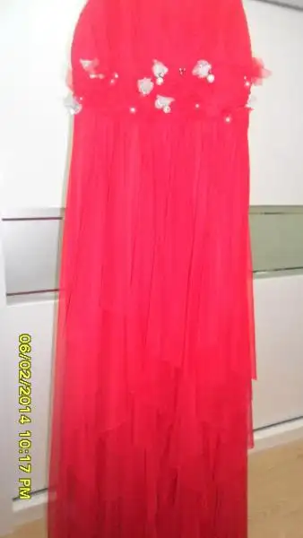 Yine nar çiçeği payetli Bele oturan 36-38 beden bir elbise.