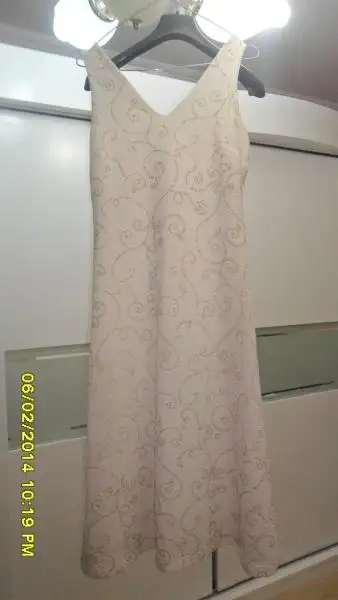 Beyaz renk, Dizlerde, yine bele oturan üzeri sıra taşlı *Yalnız taşların arka kısımlarında dökülmeler meydana geldi* resimde de çekmeye çalıştım. 36 beden.