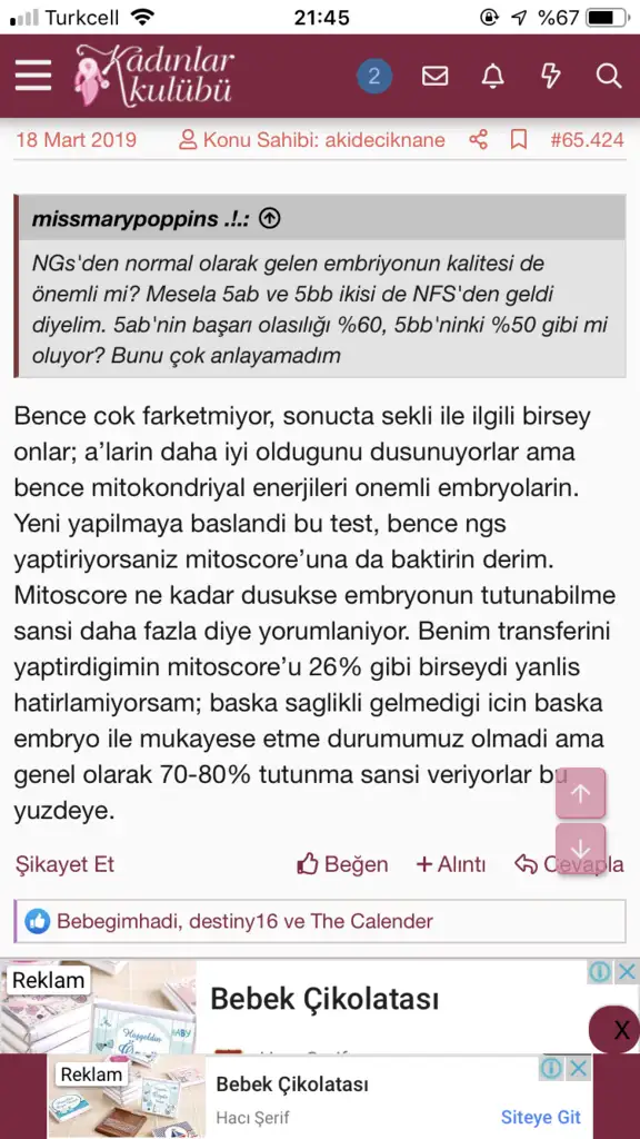 Ben hiç karıştırmıcam kendim için bu aşamada çünkü 1 tane sağlıklı dönerse zaten öpüp başımıza koyucaz ☺ 2 tane de dönse ikisini de transfer ettiririm, NGs gibi zor bir sınavdan geçmiş yavrucukları bir de mitoscore’larına göre değerlendiremicem 😂