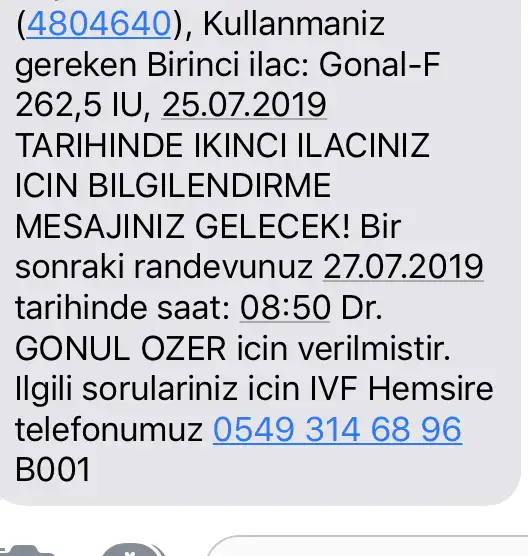 Ben çok anlamadım 25/07 de seni görmeden yumurtalara bakmadan mı ilaç verecekler 27/07 de randevu demişler. Garip geldi bana ama sistem güzel görünüyor..ben de Gonal F kullanmıştım 3.opu da 300, 300 vuruyodum valla.gerçekten ilaç dozunuz az..iyi bir sey bu da..herşey en güzelinden olsun sizin içşn![]()