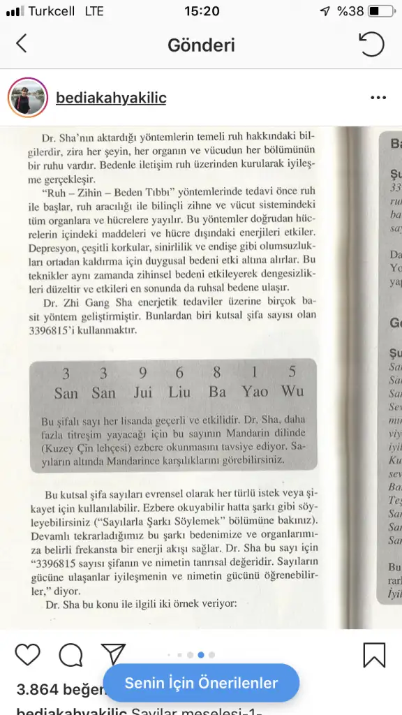 Ben sayilarin sifasi olduguna inaniyorum:)) 3396815..bir donem surekli sag koluma yazip geziyordumBu arada dün bir kitaba takıldım pdf i elime geçti..çok ilginç bir kitap..Enerji olaylarına bilinçaltı ve şifa tekniklerine ilginiz varsa tavsiye edeyim..birazdan kitabı almaya gidicimmmm..altını çize çize okumak istiyorum.. Bu arada sayılarla frekans dengeleme falan da var.. adı dört anahtar dr.zhi gang shakipat tavsiyesi