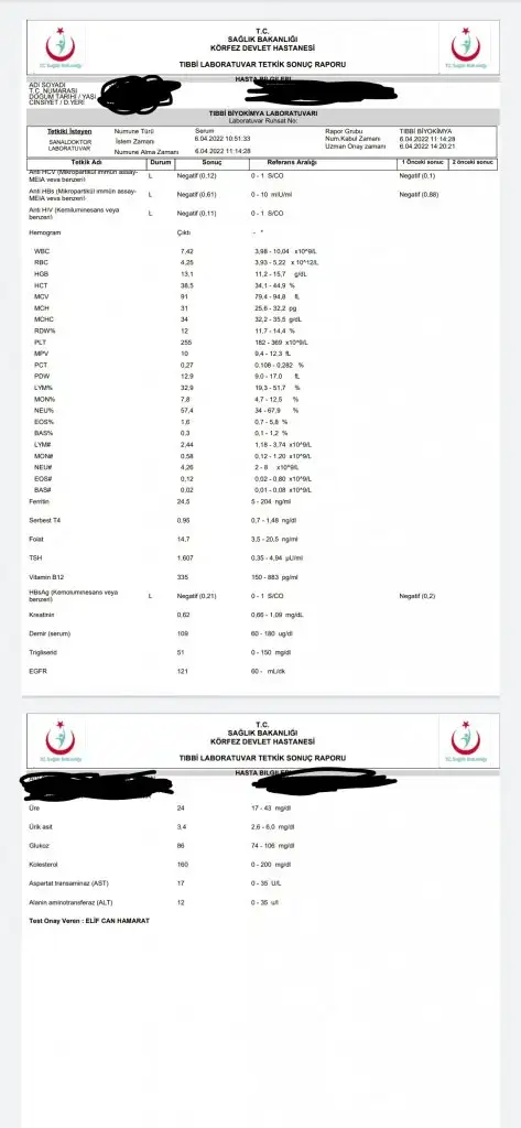 Kan testim çıktı ama dokturum yarına bakacak yoktu anlamadım bende siz anlat mısınız paylaşabilirimKan testiniz kaç çıktı?