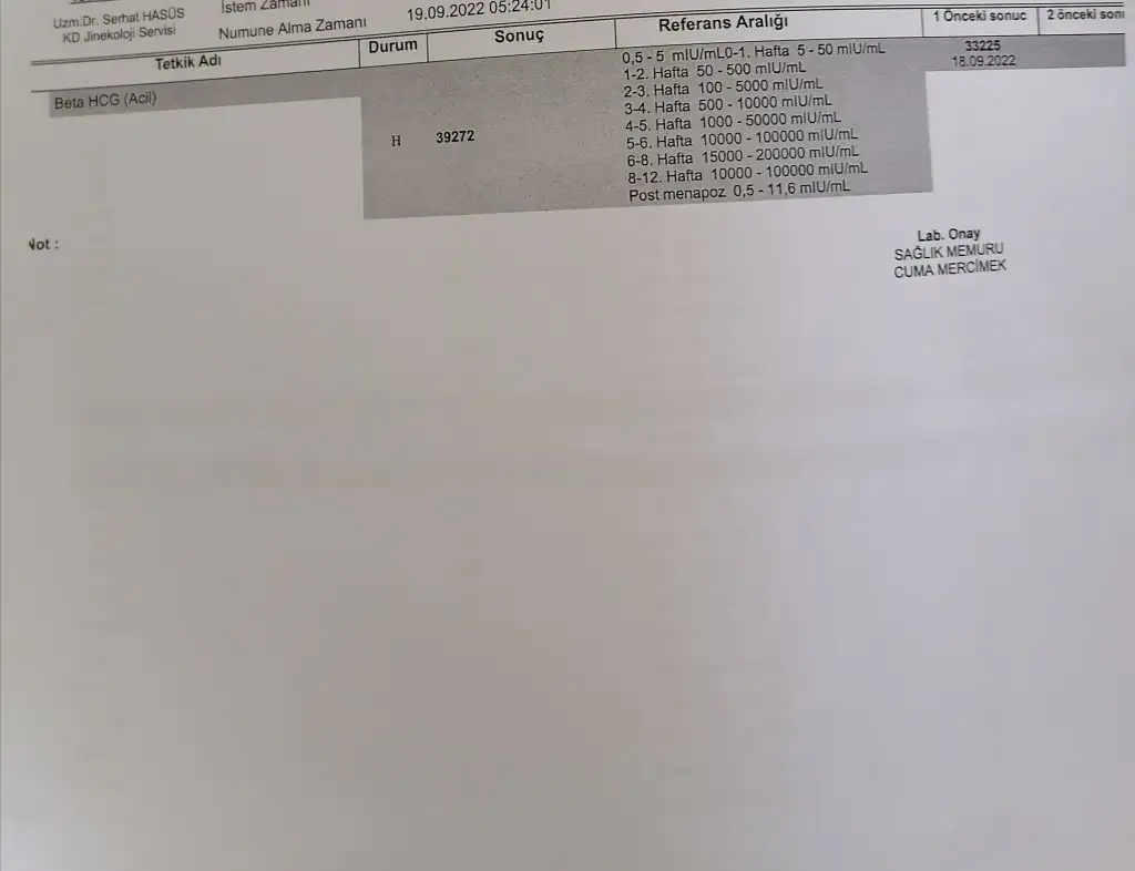 Betanızın 24-48 saatte 2 katı artması gerekli fakat sizin betanız dünden bugüne epey az bir artış göstermiş…