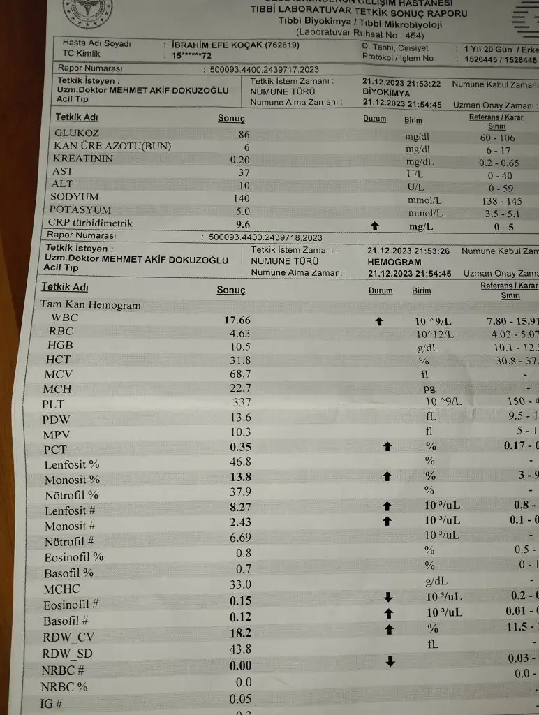 Bugün kendi doktoruna götürdük zature başlamış dedi ne çabuk ilerlemia hiç bilmiyorum iğne verdi 3 gün antibiyotik verdi buhar vs işte bakalim inşallah faydası olur kan degerlernide enfeksiyon yükselirse eğer yatış yaparım dedi