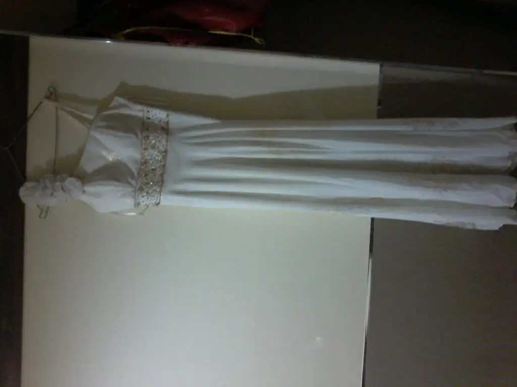 Resim eklermisiniz lütfenBeyaaz uzerine altin baskili abiye mevcut tek omuzlu uzun.