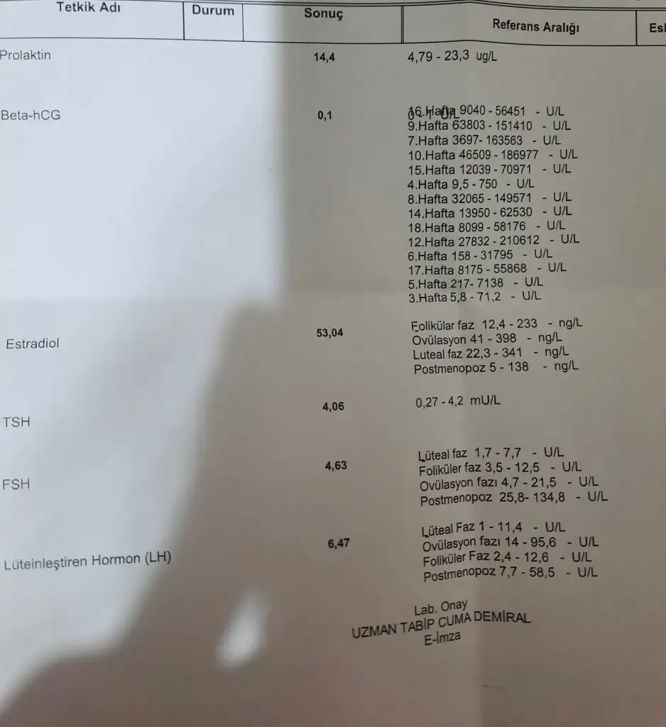 Merhaba kızlar kadın doğuma gidip muayene olmak istedim ancak adetim 2 gün önce bitmişti yine de doktor hormon testi istedi sonuçlarım şu şekilde;