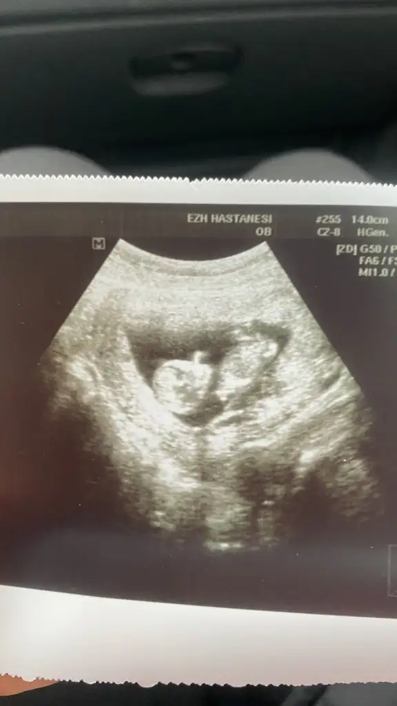 merhaba kızlar bir kaç gündür baş ağrısı mide bulantılarından dolayı çok kötüydüm bugün doktora gittim daha yeni toparlanıyorum bebeğimi ilk burda öğrendiğim için sizinle de büyümemizi paylaşmak istedim. Doktor ısrarım yüzünden erkek gibi sanki ama emin değilim dedi 11+4 olmuşuz 🙏🏻 kafası burda çok keskin çeneli çıkmış ama ben ultrasonda baktığımda yuvarlaktı anlam veremedim 🤷🏻‍♀️ Allah isteyen herkese nasip etsin inşallah ben sizlere dua ediyorum hala 💕
