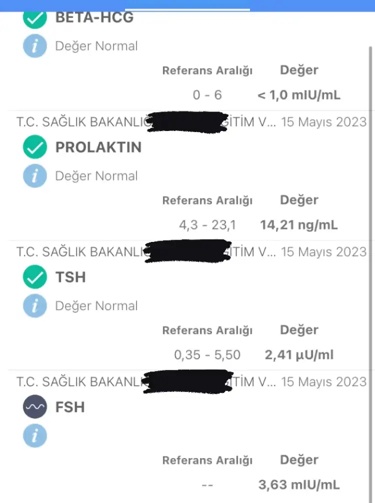 Arkadaşlar merhaba 2 aydır adet olmadım en son 24 Marttı adet başlangıcım doktora gittim hormon testi bu şekilde çıkmış ama halen olmadım normalde çok düzenliydi ilk kez böyle bir şey yaşıyorum.Stres ve kullandığım soğuk algınlığı ilaçları olabilir mi sizce sonuçlardan ne görüyorsunuz