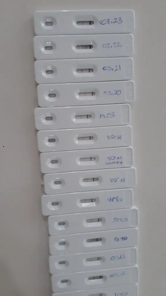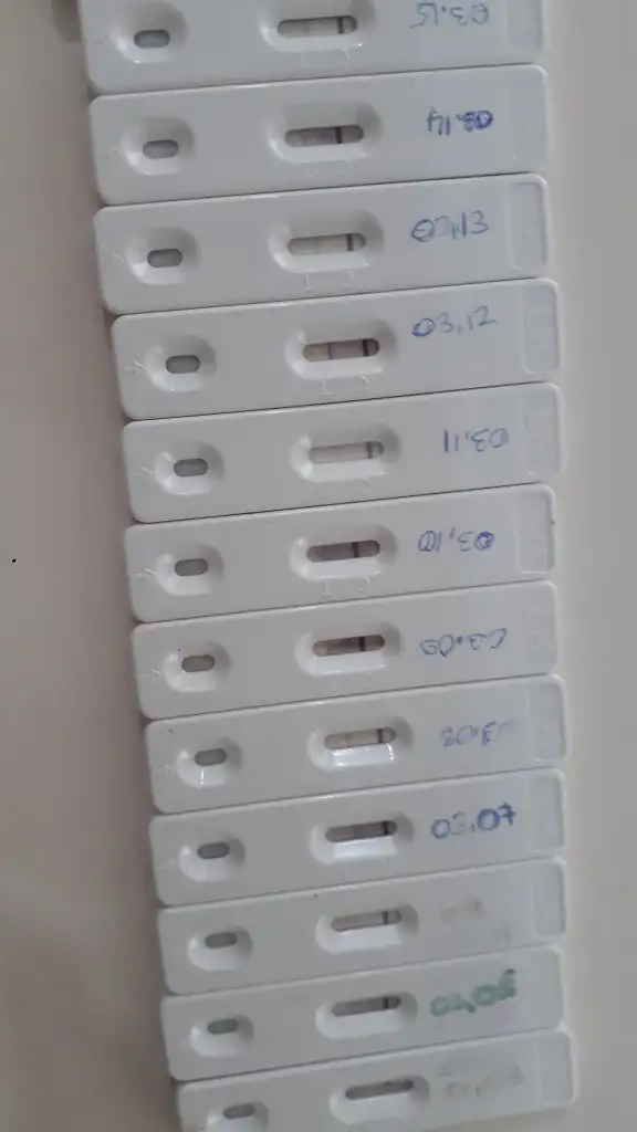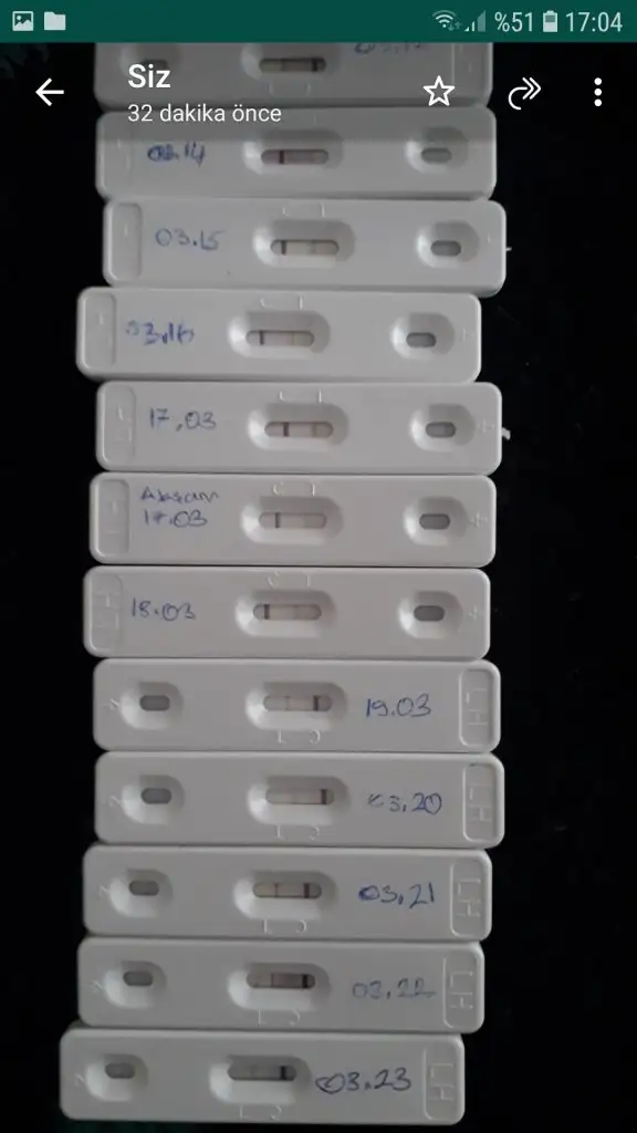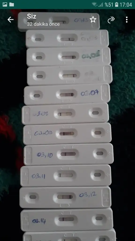 Sevgili kızlar, hepinize merhaba. Sizlere birkaç sorum olacak, cevaplayabilirseniz çok sevinirim. 1buçuk senedir bebek istiyoruz ama Allah daha nasip etmedi. Adetimin 16. Günü yani 4 martta yumurtlama akıntım oldu ancak bu akıntı 10 gün kadar sürünce bir ovülasyon testi alayım dedim. Çünkü normalde 1-2 gün sürer, biterdi. Her neyse. Bugün adetim 1 gün gecikmiş oldu. Birkaç gün önce hem ultra erken hem de normal gebelik testlerim negatif çıktı. Ben ısrarla ovülasyon testi yapmaya devam ediyorum. Adet olacakmışım gibi ağrılarım devam ediyor. Arada da çamaşırımda ıslaklık oluyor, adet oldum sanıyorum ama şeffaf geliyor. En son bugünkü ovülasyon testimin ve adetimin 23. Gününden beri yaptığım ovülasyon testlerinin fotoğrafını paylaşıyorum. T çizgisi C kadar koyu değil ancak ona çok yakın koyulukta çıkıyor. Size sorum -yaşayan varsa beni aydınlatsın lütfen- gebelik negatif, ovülasyon pozitif çıkıp da hamile olan var mı aranızda? Ovülasyon testleri gebelik belli eder mi? Umutlanmalı mıyım? Kan testi şu an vermek istemiyorum. Annem “Test için 10 gün geçsin adetinden” der hep. Eski usul yani ☺️ Uzun bir yazı oldu, okuyup da cevaplayan herkese şimdiden teşekkürler. Biraz dertleşmeye ihtiyacım var sanırım 🥰