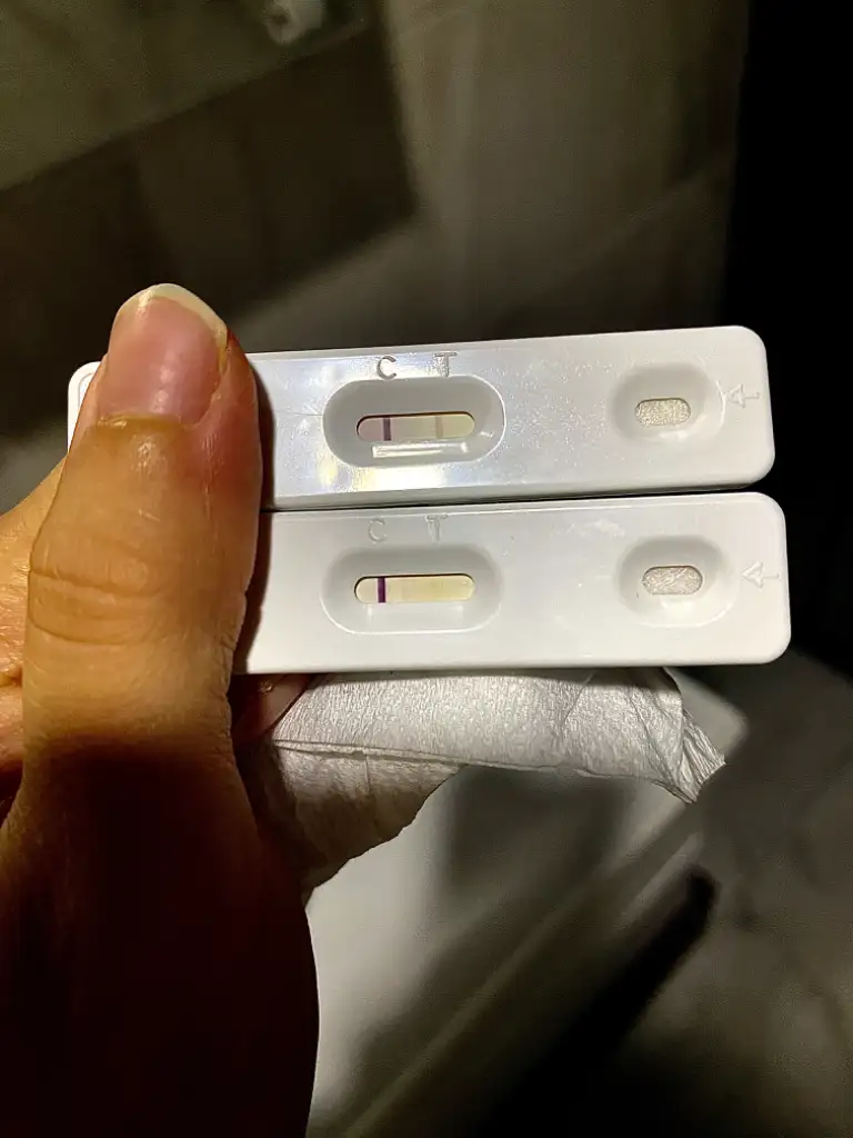 Hanımlar adetime 4 gün var. bu ay yumurtlama dönemini değerlendirdik. Dün hafif leke şeklinde minik bi kanama gördüm birkaç saat sürdü çok az geldi. Belimde kasıklarımda ağrı var ve çok üşüyorum adet olacağım için sanırım. Dün de bugün de test yaptım ama ikinci çizgi sanki beyaz çıkıyor. Fotoğraf kalitesinden çok anlaşılmıyor burada ama. Testin bozuk olma ihtimali var mı internetten sipariş vermiştim birkaç kişi de bu konudan şikayetçiydi siz ne düşünüyorsunuz