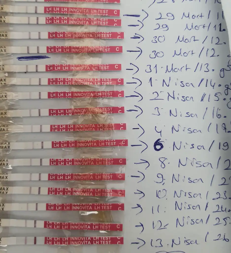 Kızlar ben bi kaç aydır deniyorum fakat nasip olmadı . Bu ay bayram nedeniyle şehir dışına çıktık ve hiç kafaya takmadan birlikte olduk günleri dahi takip etmedim . Normalde Ovulasyon takibi yapmıştım geçen ay . Adete 9 gün kala 2. Yumurtlamam oldu. Bu ay 6 gün kala göğüslerde hassasiyet yaşıyorum gece yatarken falan uyandırıyor bazen . Ara ara kasık ve karın ağrısı ama tam çözemiyorum nerem ağrıyor 😂 aklıma düştü kısaca ve evde gebelik testim yoktu . İki gündür Ovulasyon testi yapıyorum ama anlayamadım yardımcı olur musunuz