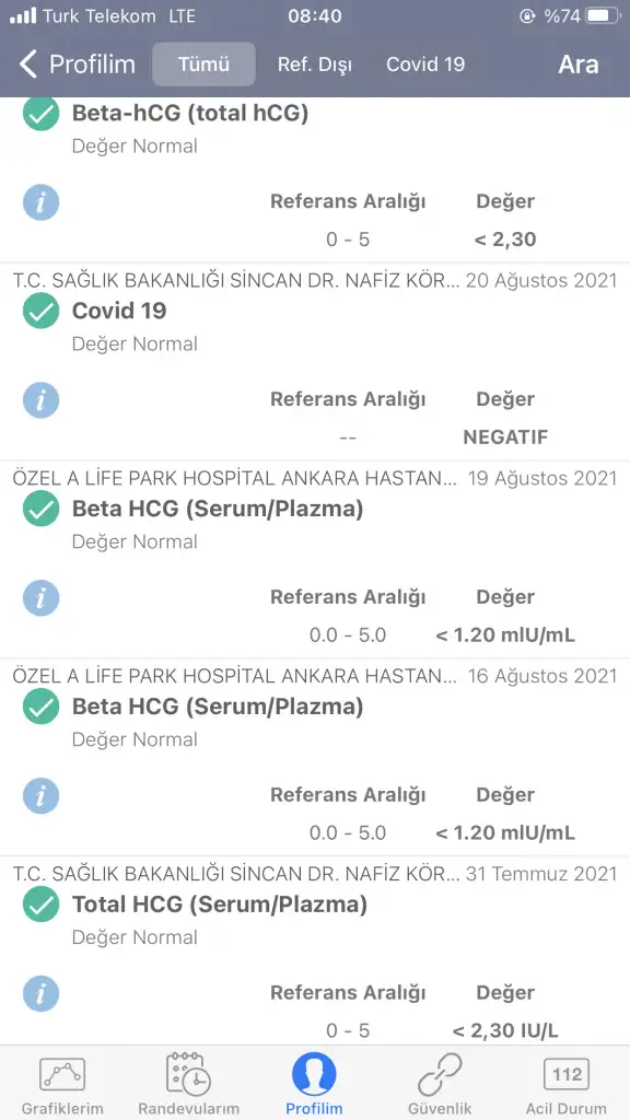 Benim tuhafıma giden şey geçen aylarda rahatsızlandım tomografiye girecektim bebek denemesi olduğu için söyledimönce test yaptı onda da aynı çıkmıştı doktor yekten bebek yok dedi yine regl zamanına yakındı ama burda dikkatimi çeken şey yanında yazı yok ama ok var dediğin gibi değer olupta yükselende var dosyayı ekliyorum kafam karıştı bide şu baş dönmesi öldürdü beni