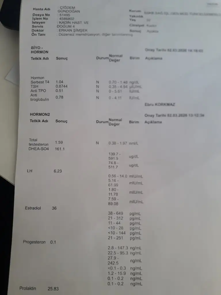 Fena değil değerler. Pcos var sanırımKızlar benim sonuçlara bakar misiniz rica etsem. Yarın doktora göstercem. Rahim temiz kist yok dedi bugün adet 3. Günüde yaptım. Bide ben ilaçsız adet olmuyorum ilk adet olduğundan beri