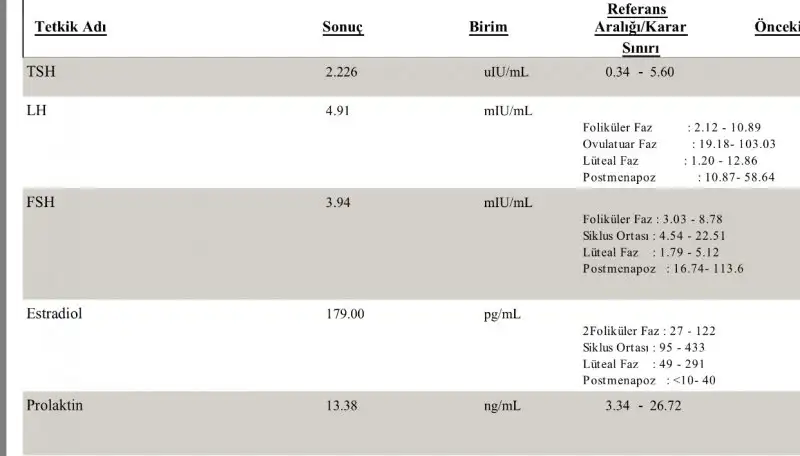 daha erken bnce sonraki tedaviler için . Doktor bana da adetinin3. günü gel yapalım ddi. ama bir adet daha bekleyip yaptırmayı düşünüyorum. İnş rabbim aratmaz kimseyeTeşekkür ederim detaylı yazınız için. Olur tabi faydası :) ben 5 aydır deniyorum kadın doğum doktoru sadece smear testi yaptı, hormon tahlili için ekime kadar bekleyelim sonra yaparız dedi, utrasonla baktı ve herşey yolunda dedi, stres yapma düşünme vs. ama ben yine de yaptırmak bakmak istiyorum. Eğer bi değerler yüksekse bari düzene sokmak için burda okuduğum aktardan ot çay vs başlarım.