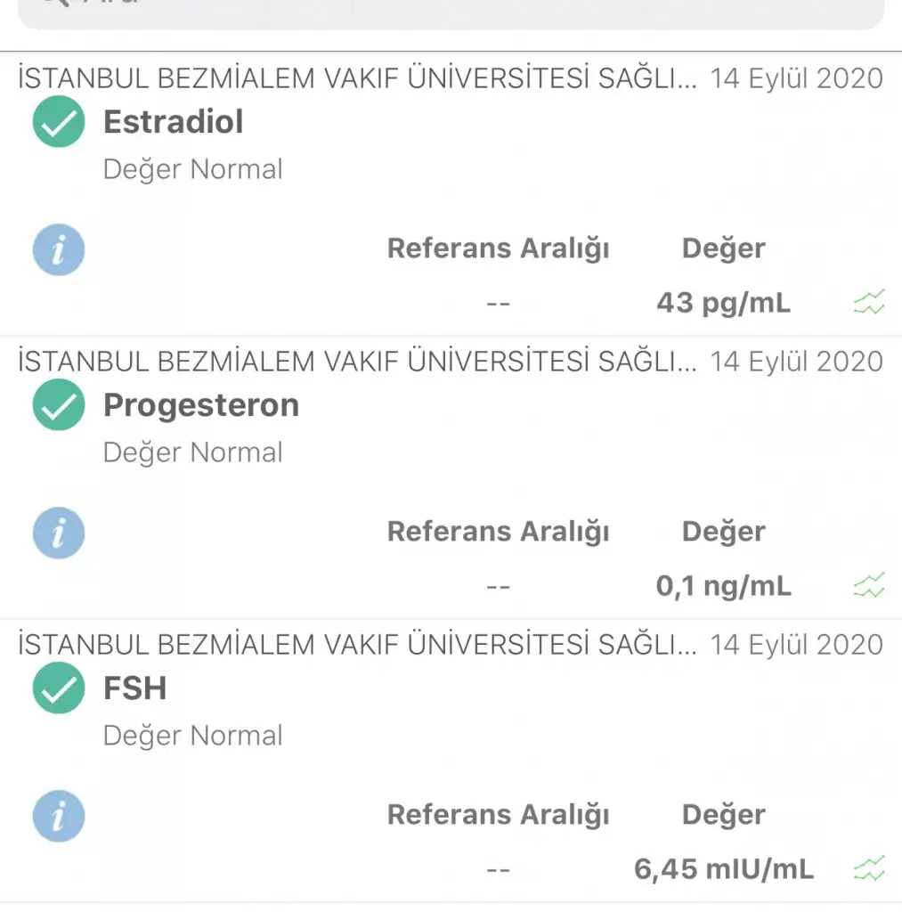 Bu ben oluyorumKızlar bir arkadaşım hormon testleri yaptırdı. Doktoru adetin 2 veya 3. günü gel demiş. 2 ve 3. günü haftasonuna denk gelmiş o da 4. günü yaptırmış ama sonuçlar yüksek çıkmış, acaba diyo 3. günü yaptırsaydım daha mı düşük çıkardı diye. Tüp bebek tedavisine başlayacaktı şimdi doktor ilaç vermiş Fsh 37 çıkmış 3. gün yaptırsaydı daha mı düşük çıkardı. Hormon tahlilini 4. günü yaptıran var mı çok bir değer fark eder mi?
