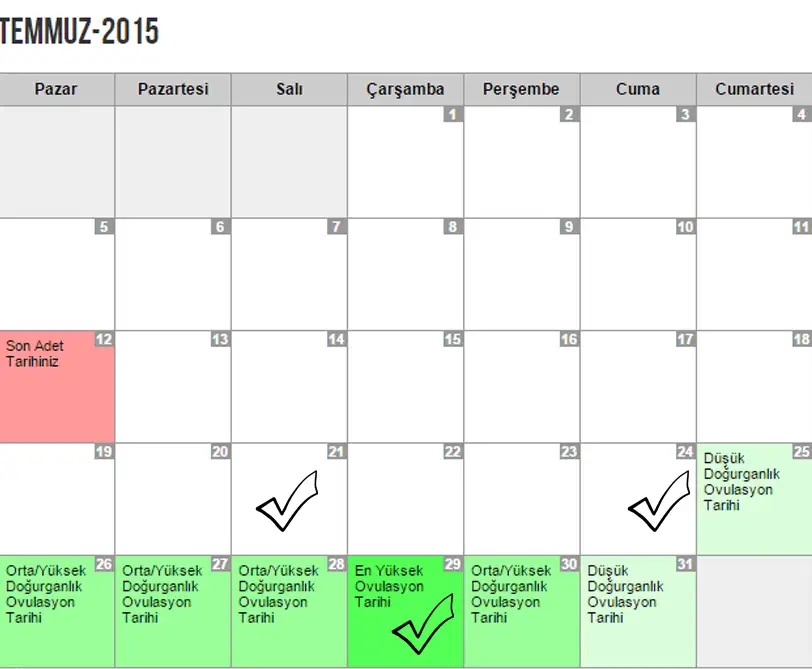 Canım geç döllenme olduğunda, adet geçilmesinden 10 gün sonra pozif çıkanlar oluyor,bekle bakalım, benim 7 aydır ,her ay 3,4 gün öne gelen adetin,24,30 arasında sayıyor,bende bekleyeceğım sabret canım,Kafam çok karışık. Ekte işaret koyduğum günler yumurtlamaya yakın gerçekleşen ilişki günleri. 10 ay oldu doğum kontrol hapını bırakalı ama bu süre zarfında eşim korundu ilk kez bu ay bebek için denedik. Ben kasık ve bel ağrısı ve halsizlik nedeniyle 4 Ağustosta gebelik testi yaptım eczaneden alıp ama negatif çıktı. Çok mu erken yaptım acaba? Hamile olma ihtimalim var mı? Burada bazen reglinden 7-8 gün önce pozitif sonuç alanları görüyorum. Olsaydı kesinlikle çıkarmıydı? Yoksa 4 Ağustos erken bi tarih mi olmuş? Yardımcı olursanız çok sevinirim. Teşekkürler