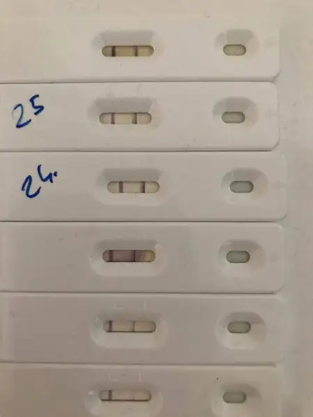 Arkadaslar selam herkese, bu ovulasyon testleri ile ilgili bir sorum olcak deneyimli kisilere; adete 1 gun kala gece ovulasyon testi denedim, ikinci cizgi belirgin ama digerinden silik. Bunun anlami nedir? Yumurtlama olamaz cunku gecti yumurtlamam. Acaba testler hatali mi? Bir de hep mi silik cikar bu negatif, yoksa hic cizgi cikmaz mi negatif iken? Cok soru sordum yine :)
