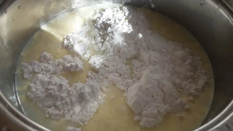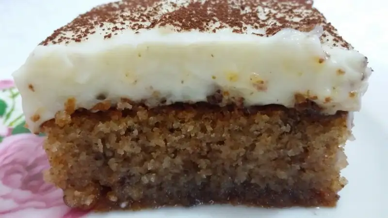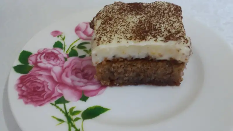Yumurta ve şeker mikserle çırpılır.Galeta unu,sıvıyağ,tarçın,ceviz eklenip karıştırılır.En son vanilya ve kabartma tozu eklenip tekrar karıştırılır ve yağlanmış tepsiye dökülür.Kek ayarında pişirilir.Şerbet için şeker ve su şeker eriyinceye kadar karıştırılır.Fırından çıkan kekin üstüne bu şerbet dökülür.Üstüne tekrar ceviz serpilir.Muhallebinin tüm malzemeleri eklenip pişirilir.Ilıdıktan sonra toz halinde krem şanti eklenip iyice karıştırılır.Muhallebi kekin üstüne yayılır.Kakao serpilip servis edilir.