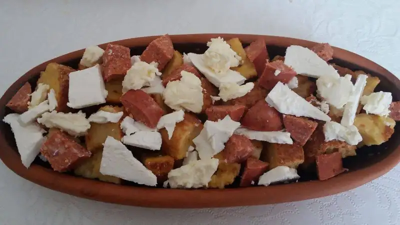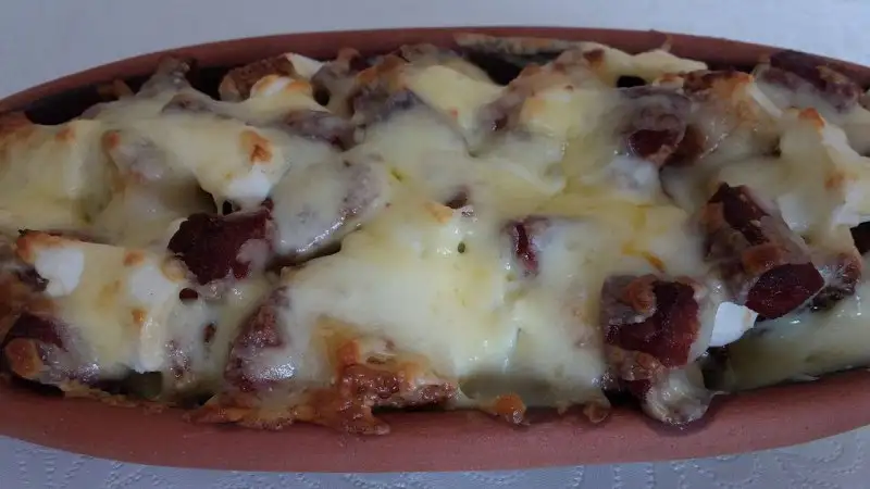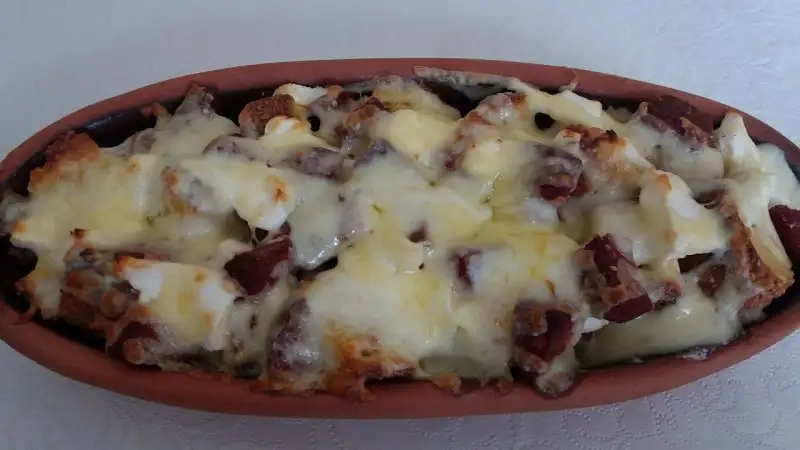 Simitler küçük küçük doğranıp yumurtayla karıştırılır ve hafif tuzlanır.Fırın tepsisine koyulup üzerine küp küp doğranmış sucuk,beyaz peynir ve tereyağ parçaları eklenir.Fırına atılıp hafif kızarınca üzerine rendelenmiş kaşar peyniri serpilip tekrar fırına verilir.Kaşarlar eriyince alınır.