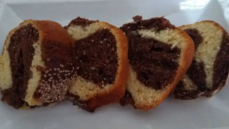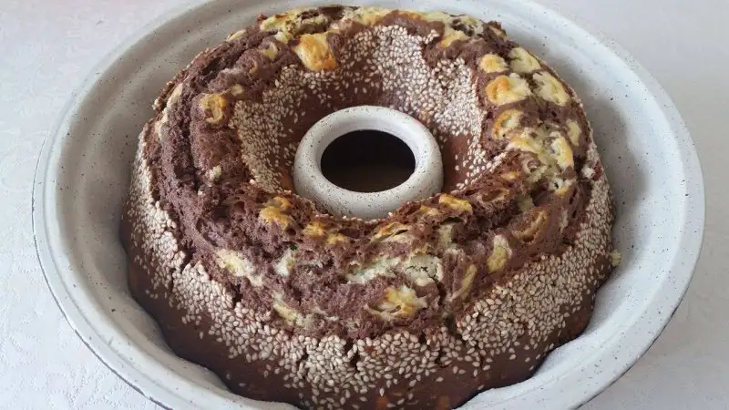 Yumurta ve şeker iyice çırpılır.Süt,sıvıyağ,kabartma tozu ve vanilya eklenip karıştırılır.Aldığı kadar un eklenip akışkan bir hamur elde edilir.Yağlanmış kalıba hamurun yarısını dökülür.Kalan yarısına kakao eklenip karıştırılır.Sade karışımın üzerine kakaolu karışım dökülür.Üzerine susam serpilip 180 derece fırında pişirilir.