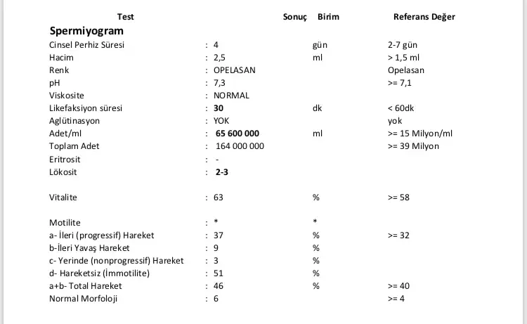 Bu 4. Ay. Bende de hiç sorun görülmedi. Şimdi sperm testi de fena değil sanki. Bundan bir önceji sperm testi sonucu hızda sıkıntı vardı. Düzelmis görünüyor. Denemeye devam bakalım. İnsallah 3 ay içinde hamile kalirsin. 3’den sonra insan bunaliyorGörüştük hiçbir sıkıntı yok gayet iyi dedi.