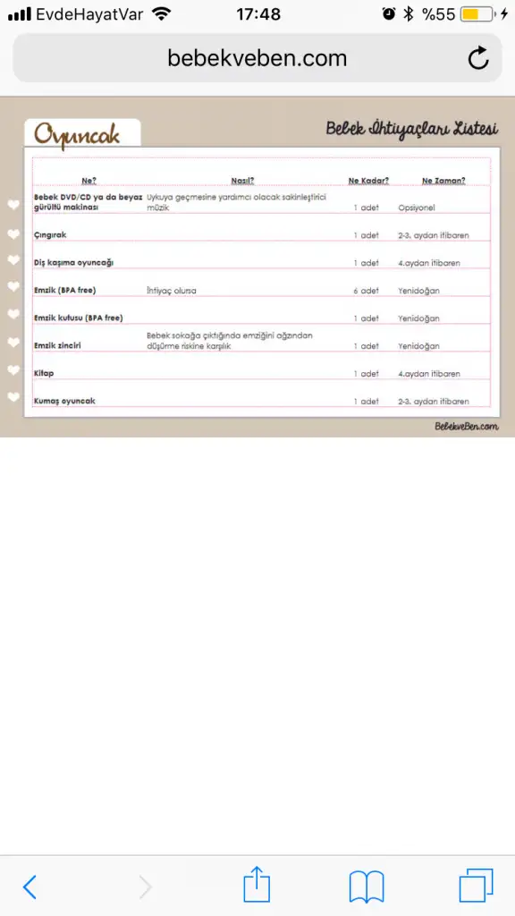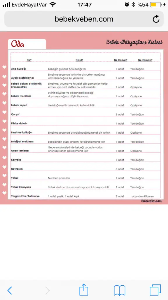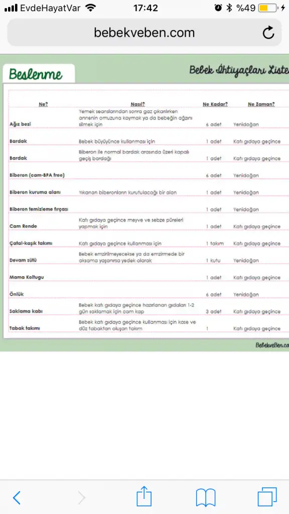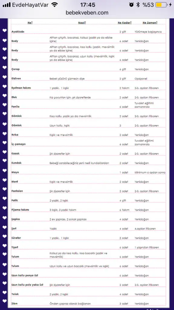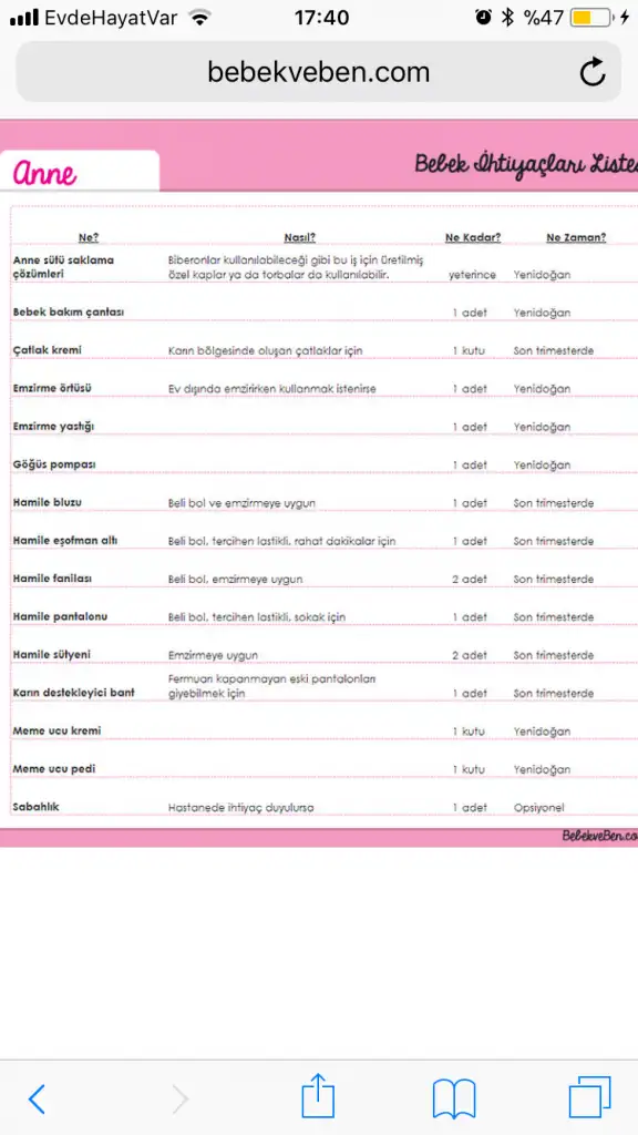 Cok teşekkür ederimTabii bu listede ilk 1 yıllık alışveriş malzemesi var, herşey hamileyken alınacak gibi değil... ama gene de çok