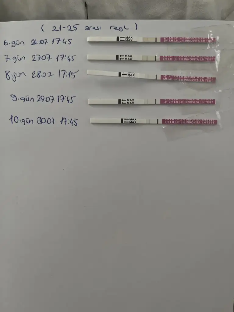 Aslında süreçte innovita testleri ile ovülasyon yakalamaya çalıştım bu ilk denememizdi ama benim bilgisizliğim nedeniyle sanırım ben 2 saat sıvı alımı yapılmaması gerektiğini bilmediğim için testlerde hiç ovülasyon yakalayamadım. Ya da gene yazılanları okuduğuma göre her kadın her ay yumurtlamıyormuş… Ama gene de dayanamayıp belirtilerime göre(hafif mide sorunları, göğüs ağrısı, bel&kasık ağrısı vs) test yapmak istedim. Gerçi gebelik testini de gene dayanamayıp ilk idrarla yapmadım innovitanın testiydi. Ondan da negatif sonucunu görünce buraya artık okuyucu değil, yazıcı olma vaktimin geldiğini anladım…