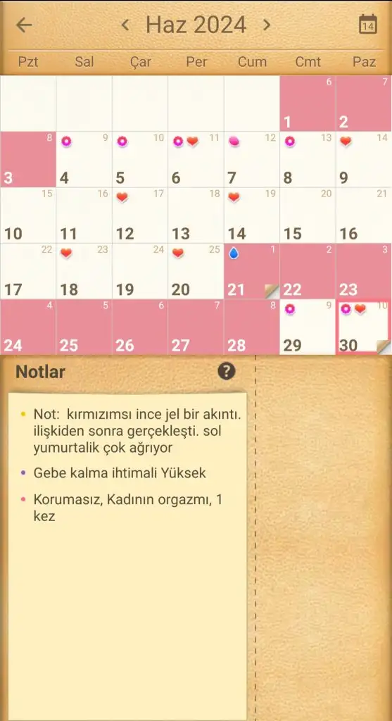 İlk fotoda 30 Haziran yumurtlama günümdü galiba jel bir akıntı geldi ilişkiden sonra. Diğer ilişkiler de sonraki fotoda kırmızı kalpler iliskiler