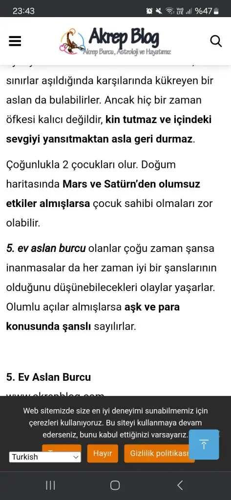 Ya da şöyle bişey sorayım 5. Evimi ben evlilik diye biliyodum eksik biliyomuşum. 2. Bebek için uzunca bi zamandır uğraşıyorum, aslanda oluşundan dolayı mı olmuyo engelleyen bişey mi varCanım 5. Evinde aslan var. Aslan burcu tarihi 22 temmuz- 23 ağustos arası oluyor yani bebeğin burcu aslan gözüküyor ama aynı zamanda şıron burcu 5. Evinde bununda yorumu şu şekilde. Bak haritanıda atayım yanlarındaki burçları evleri aratarak başka şeylerede bakabilirsin. Her evin bi burcu gezegeni var hepsinin anlamları farklı