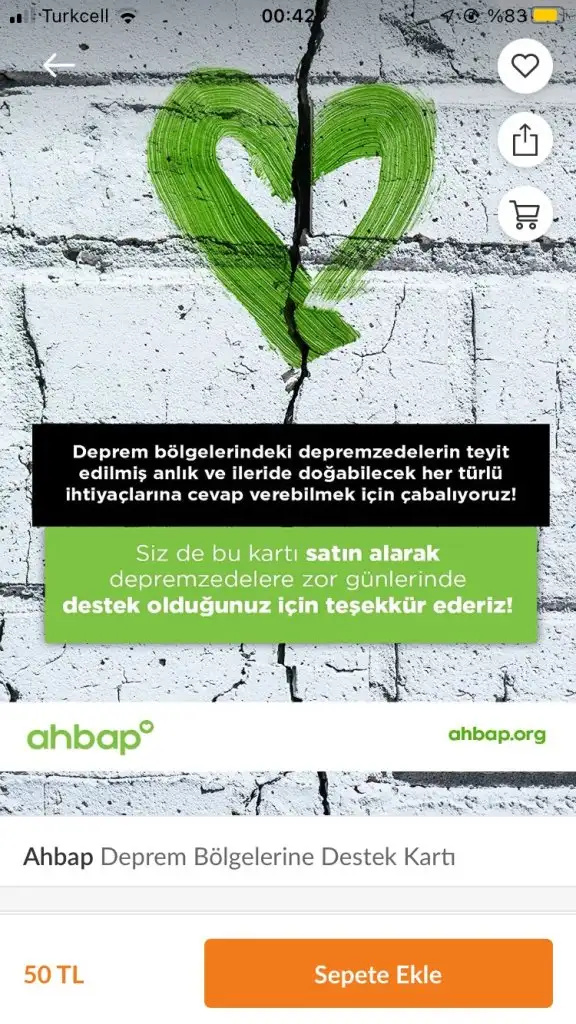 Ahbap'a siz de elinizi uzatmak isterseniz 50 TL'lik deatek kartlarından almanızı rica ediyorum.