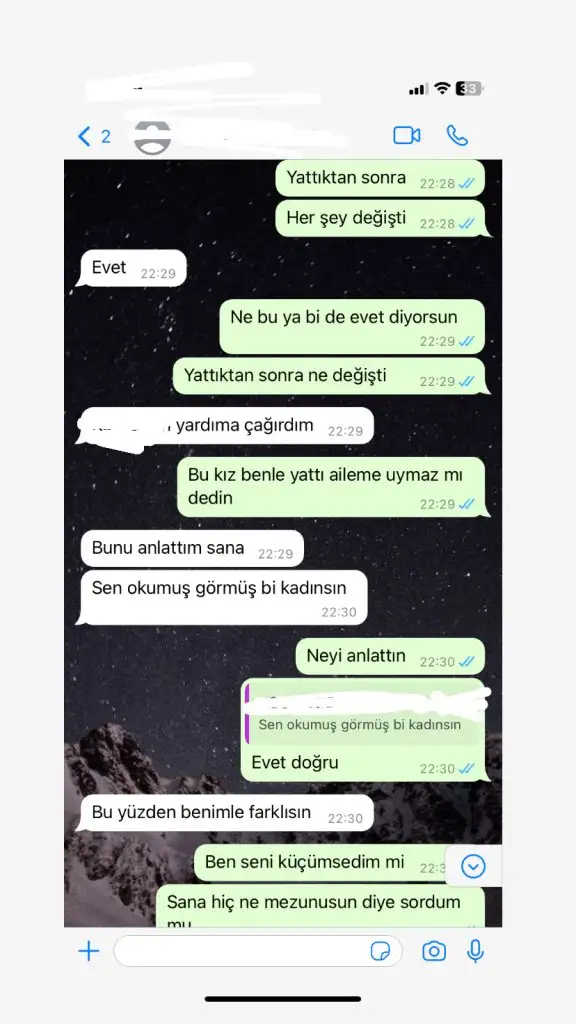 Dün teyzemin kızının aile tanışması olacaktı. 8 senelik ilişkisi var sevgilisini hepimiz tanırız çocukluk aşkı gibi bir şey ikisi de 25 yaşında. Çocuk muhafazakar biri. (Aileside) dün sabah hazırlık yaparken teyzemin kızına fakeden bir mesaj geliyor (instagram ortak hesaplarına) “Merhaba senin sevgilin seni benimle aldattı beraber olduk duygularımla oynadı diye numaram şu.. ara beni” diye sonra mesajlar silindi ama biz numarayı gördük bir kaç tane de ekran resmi onları da koyacağım. Kızı aradık “iş arkadaşlarının arkadaşıydım kendisi bana asıldı 1 hafta sevgili olduk babam telefonumu karıştırıyor bazen ortadan kaybolabilirim dedi, daha sonra kavga ettik barışmak için iş arabasıyla beni aldı ve arabada beraber olduk bana sen benim aileme göre değilsin okumuş ve açık bir kadınsın dedi ben bahane olduğunu anladım araştırdım başka bir telefona numarasını kaydettim resmimizi gördüm profilde , bana gizliydi ” dedi ekran resimleri (bir iki tanesini gösteriyorum) attı. Sevgilisi ise yeminler etti o kız sorunlu iş arkadaşımla benim telefonumdan konuştu o bana koştu ekran resimleri shop diye. Teyzemde (cahil kafası) sevgilisine inandı 2 günlük adamla niye beraber oluyor iptal etmeyelim dedi. Kızda sizi bağlamaz benim hayat tarzım amacım bir kadını kurtarmak dedi büyük tartıştılar. Herkes bize oynanan oyun biri aile tanışması olduğunu biliyordu bilerek yaptılar fake hesap diyorlar. Çocuğun 8 senedir hiç yanlışı olmadı. Kız benimde duygularımla oynadı intikam almak için yaptım diyor sevgilisi ise yemin ediyor. Kuzenim arada kaldı ve inanmak istiyor ama teyzemlerde çok zorluyor çocuğu çok seviyorlar iyice psikolojimiz bozuldu kız konferans konuşmasında“X e söyleyin benimle bir alakası olmadığına kurana yemin etsin bu kadar inançlı ya” dedi çocukta bu salak kız için mi kuranı karıştırıcam dedi sonra da kurana yemin etti. Kafamız karışık hepimizin psikolojisi bozuldu erkeklerden korkar olduk