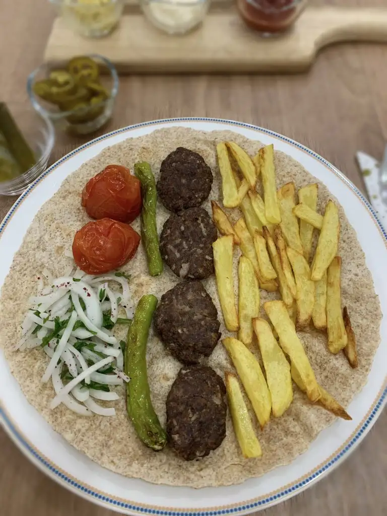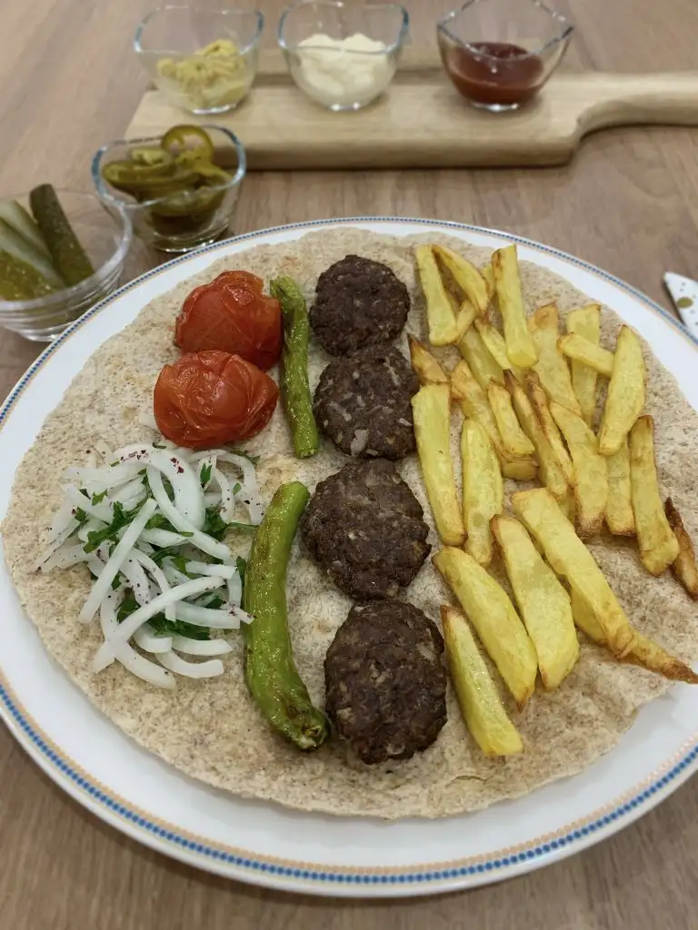 Ben patates kızartıyorum, köfte kestane yapıyorum. Bi kaç kez patlıcan közledim