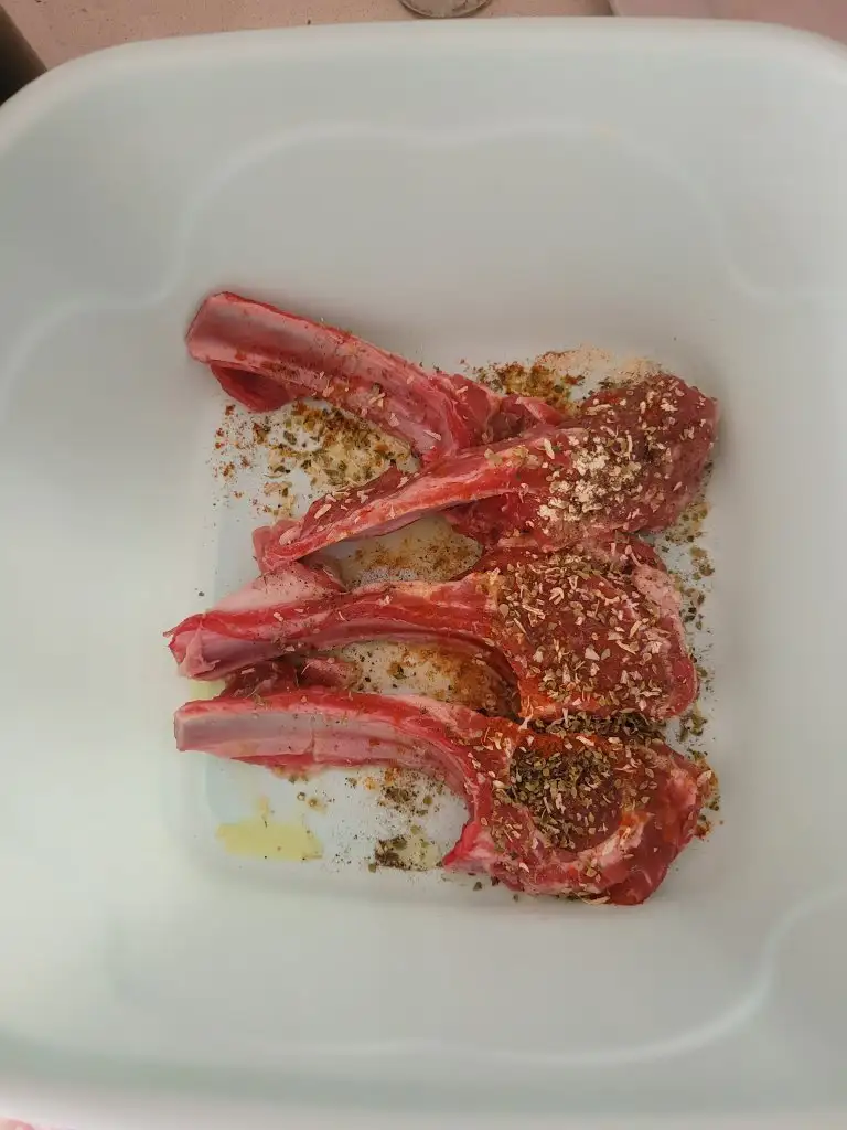 İlk önce etimi baharat ve yağ ile harmanlayıp 1 saat dinlendirdim.