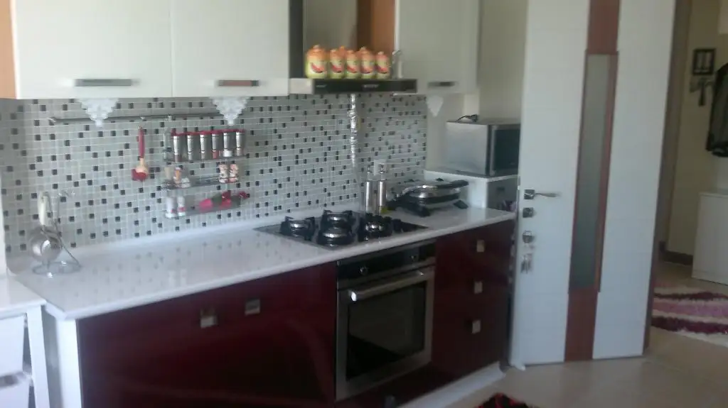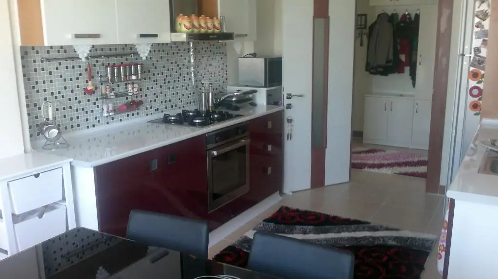 mutfak halısında kırmızı var ama dolaplar murdum sanki birtek o dikkatimi cekti..